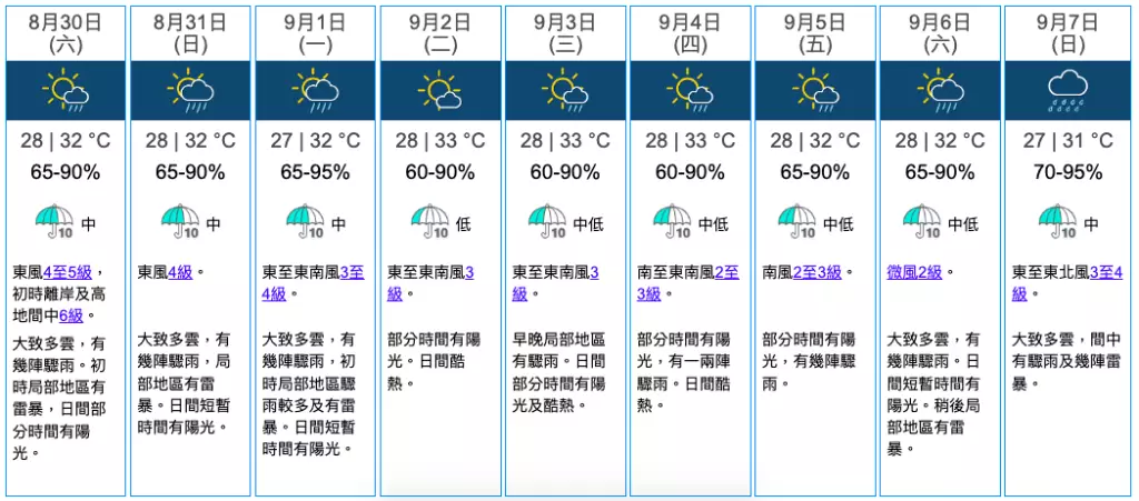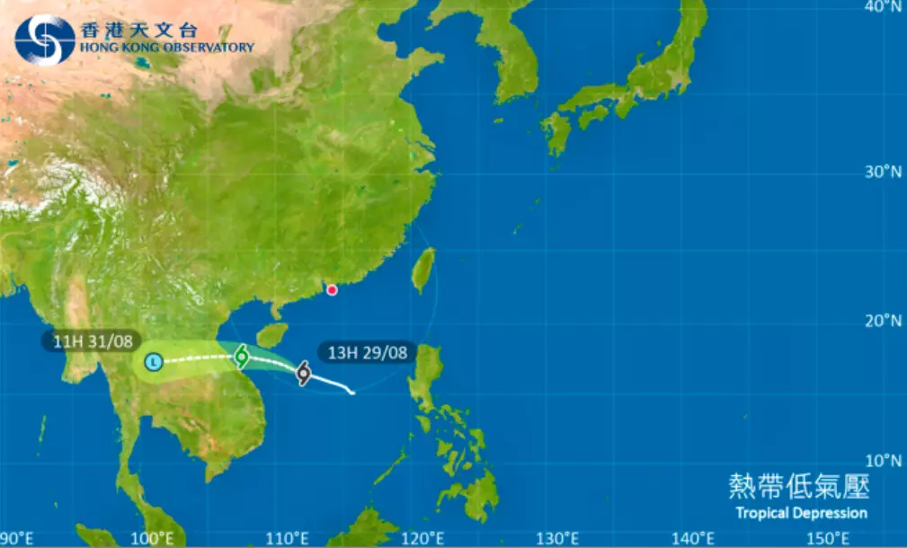 天文台預測,未來數小時,該熱帶低氣壓會於香港約600公里或以外掠過,並會稍為增強,下午部分時間有陽光及炎熱,晚上大致多雲,有一兩陣驟雨。