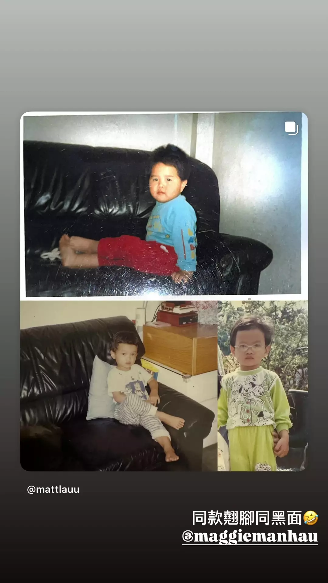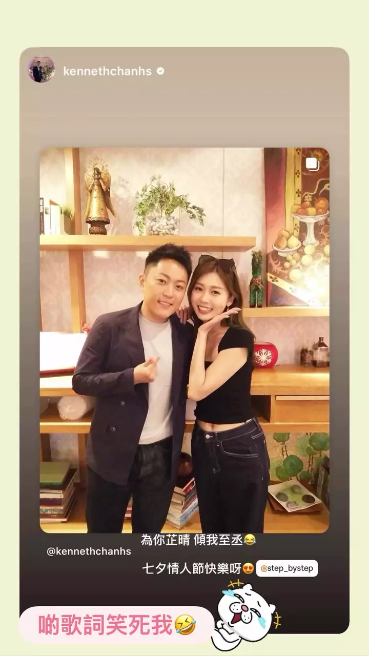 而今轉「花式示愛」中最有創意的,非律師Matt及太子爺Kenneth莫屬。堪稱《女神》「暖男擔當」的Matt,在IG上載與Maggie的「童年照拼圖」,並寫下冧豬豬Caption:「雖然遲咗禁(咁)多年先見,但係總算遠距離同你一齊翹過腳同黑過面,同埋陪你感受過一齊着校服嘅日子,七夕快樂」;但搞笑的是,Matt的肉麻心事卻換來Maggie「責難」:「你做乜偷偷地save我post story嘅小朋友相。」更神來之筆曲線甜蜜回應Matt心意:「乜咁啱嘅咩,細細個都係攞同款甫士表情,同埋用同款梳化嘅咩」,兩個都咁眼利,果然襯到絕。