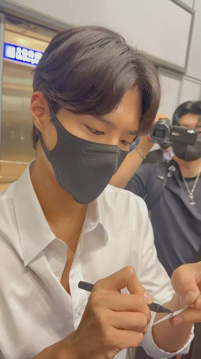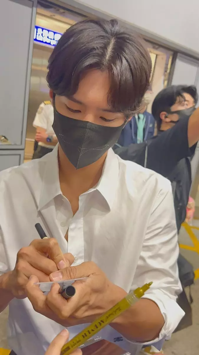 31歲的朴寶劍以親民作風聞名,28日晚他從首爾飛抵香港國際機場,雖然經VIP通道離開,但當他見到近百名接機粉絲時,立即停下腳步,微笑揮手並為粉絲簽名,停留約五分鐘展現親切態度。離開時,他更特意打開車窗,向對面馬路的粉絲豎起拇指,甚至站在車頂窗向粉絲揮手,親民舉動贏得粉絲陣陣尖叫。然而,有粉絲留意到朴寶劍戴著口罩,略顯疲態,令人擔心他因忙碌的巡迴行程而身體不適。