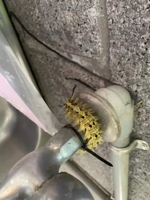 台灣女職員公司洗杯驚見「黃綠色毛毛蟲」盤踞水喉,有眼利網民指出疑係有毒青枯葉蛾幼蟲。