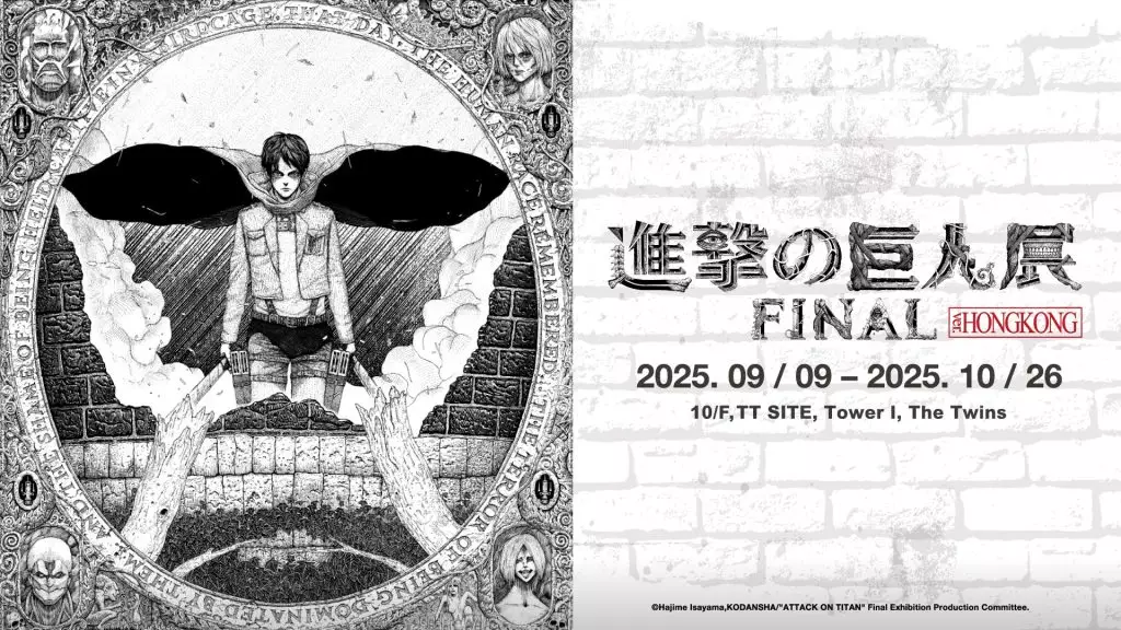 由日本官方授權的「進擊的巨人展FINAL ver. HONGKONG」,將於9月9日至10月26日登陸啟德。自2019年於日本首展後,「進擊的巨人展FINAL」巡迴台灣、首爾、曼谷等城市,終於來到香港!