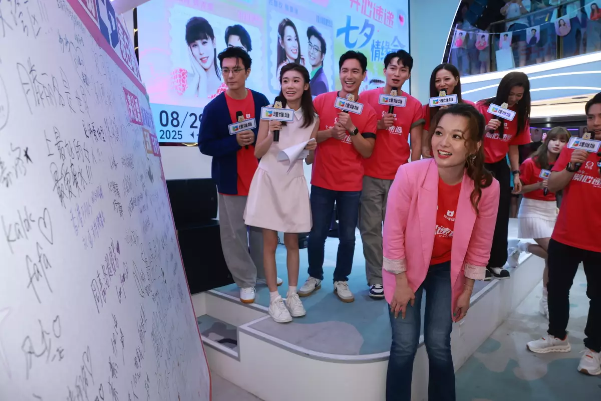無綫處境喜劇《黃道益活絡油呈獻:愛•回家之開心速遞》八位演員在監製梁耀堅的率領下,第五度前赴內地宣傳,除了昨(29日)午出席埋堆堆於廣州中華廣場舉行的「七夕情緣」粉絲見面會外,晚上更與近300名粉絲一同登上珠江遊船,共度浪漫七夕,場面溫馨熱鬧,洋溢著佳節特有的甜蜜氛圍。