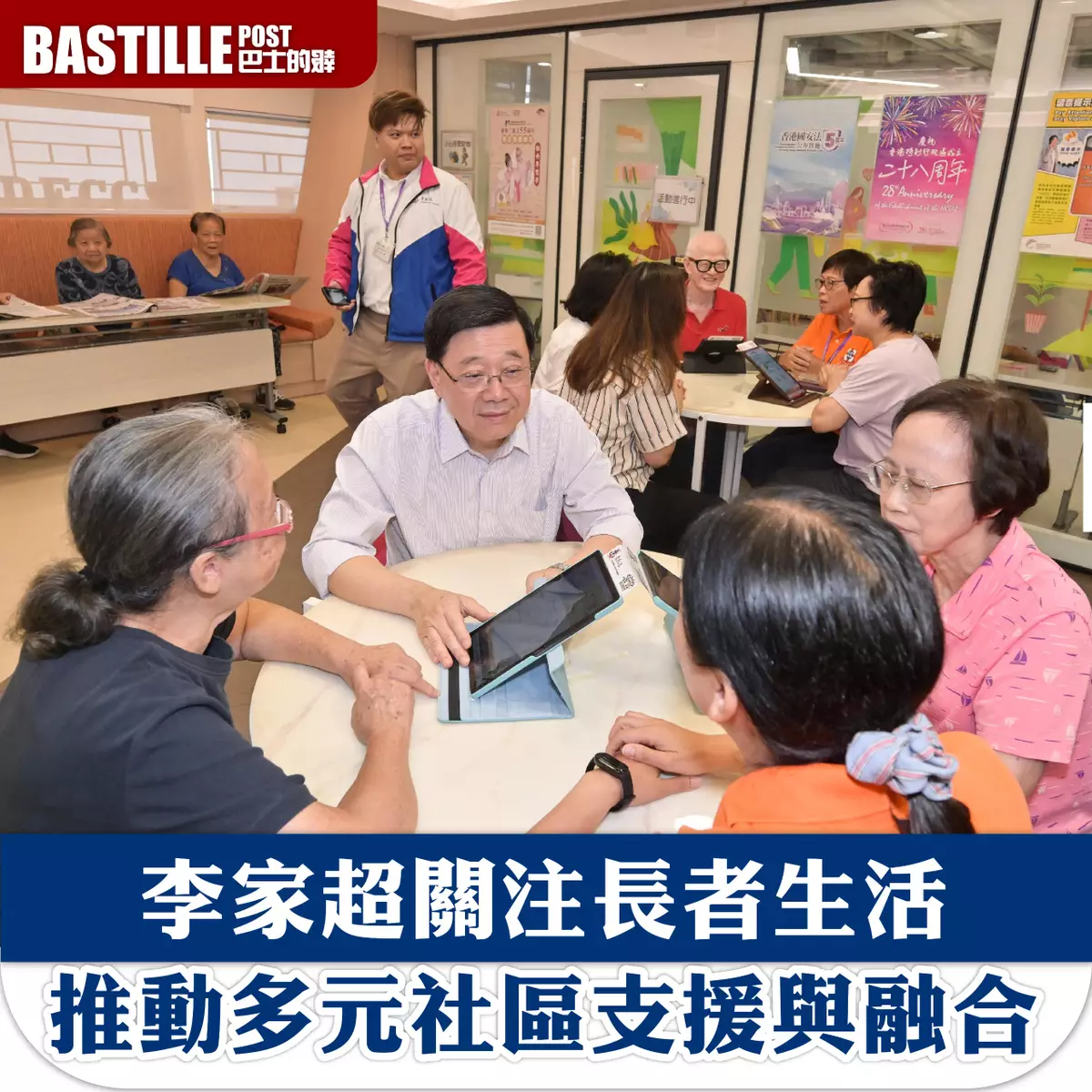 他又說,星期六探訪了兩名獨居的70多歲女長者,了解到她們積極生活,獲得地區支援,他覺得感動,又從對方口中得知,滿意支援服務。他早上到政府津助的安老院參觀,並試食軟餐,認為軟餐發展很有市場。社署已增撥資源資助社區服務及安老院,為吞嚥困難的長者提供軟餐,截至6月底,已有超過2萬長者受惠。