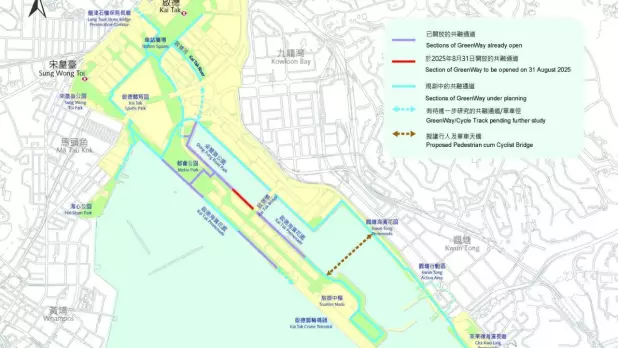 啟德海濱花園近啟德橋西面一段長約250米的共融通道,將於明日開放。第一段共融通道,以及啟德海濱花園近啟德橋東面的共融通道已於較早前開放。新開放路段將貫通由承豐道公園至啟德海濱花園全長兩公里的共融通道。