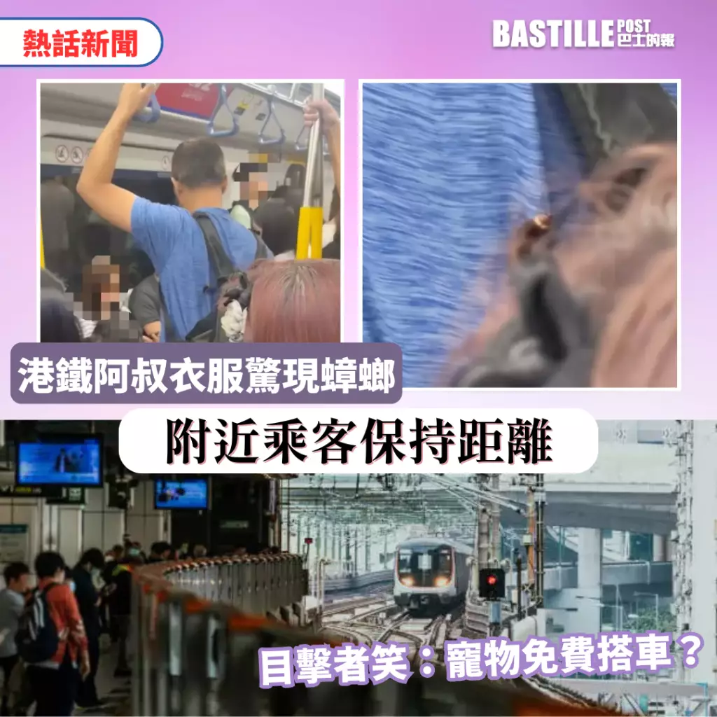樓主在社交平台threads發文,表示搭港鐵時發現一名乘客的衣服上,依附着一隻蟑螂,於是拍下影片分享。