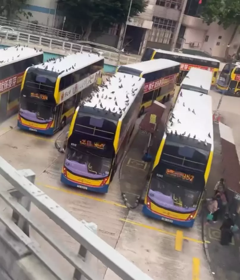 香港野鴿隨處可見,洐生不少衞生及滋擾問題。雖然政府已修訂《野生動物保護條例》,將禁止餵飼野生動物範圍擴展至白鴿,但未能大幅減少其數目。日前有社交平台流傳一條片段,驚見銅鑼灣摩頓台巴士總站被一大群野鴿佔據,更將巴士車頂視為聚集場所,情況令人側目!