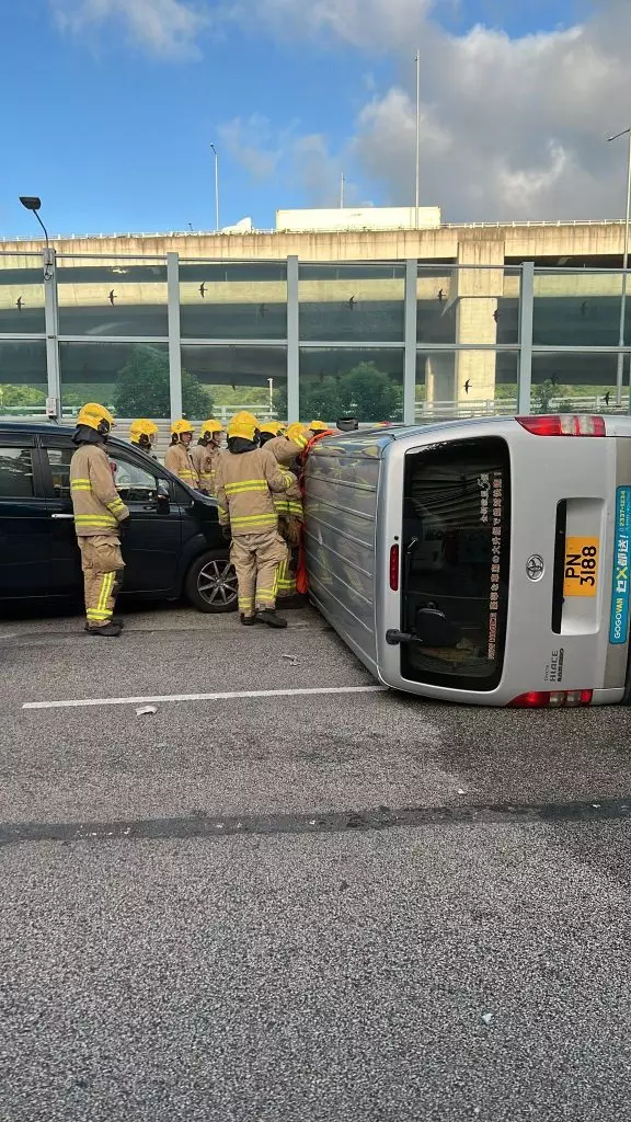 涉事女司機由消防救出時清醒,她的頸、腰及胸口痛,送往聯合醫院治理。
