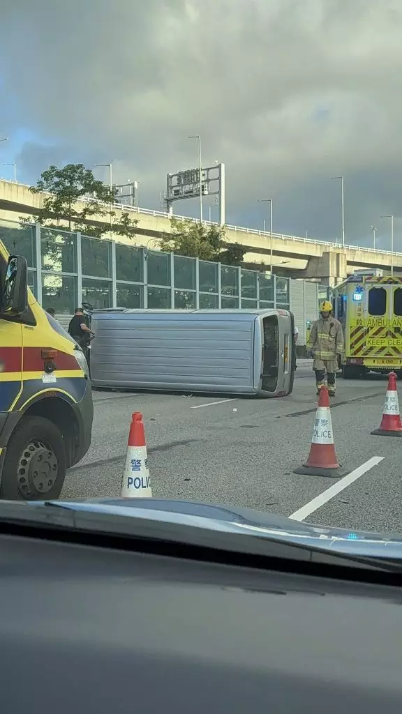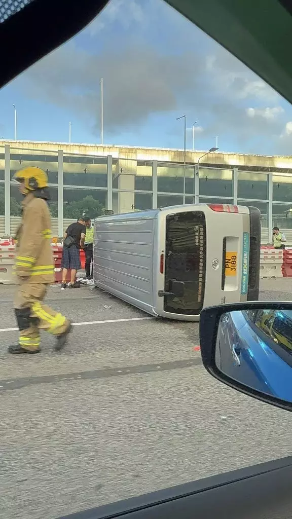 粉嶺公路下午有4車相撞,其中一輛輕型貨車翻側,車上5人受輕傷。