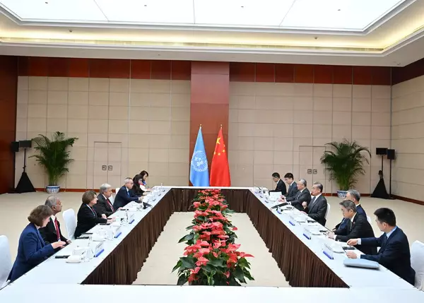 王毅和古特雷斯會談。外交部圖片