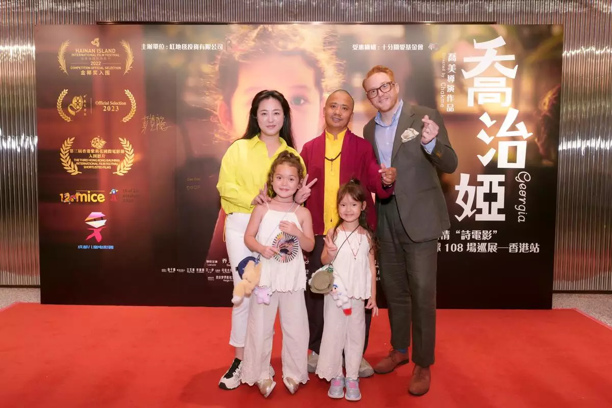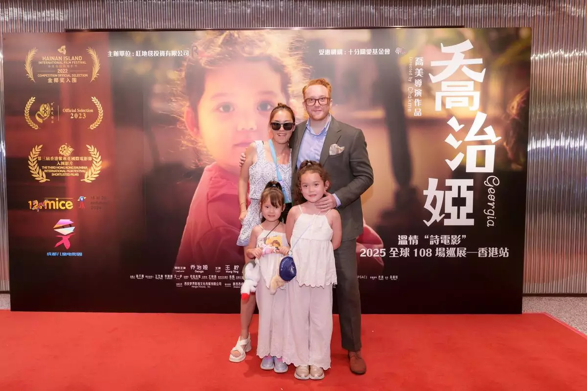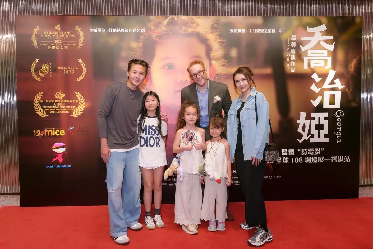 溫情電影《喬治婭》2025全球108場巡展香港站昨日(8月30日)於荷里活廣場戲院舉行慈善放映場,主辦紅地毯投資有限公司董事Simon Li,監製徐千雅、導演喬美、女主角喬治婭Georgia(小Geo Geo)跟家人特地由外地飛香港出席慈善放映場,出席藝人包括陳樂榣(Ally)、老公葉泓聲(Gordon)、10歲大女Aria以及林子善和5歲女兒林以晴。