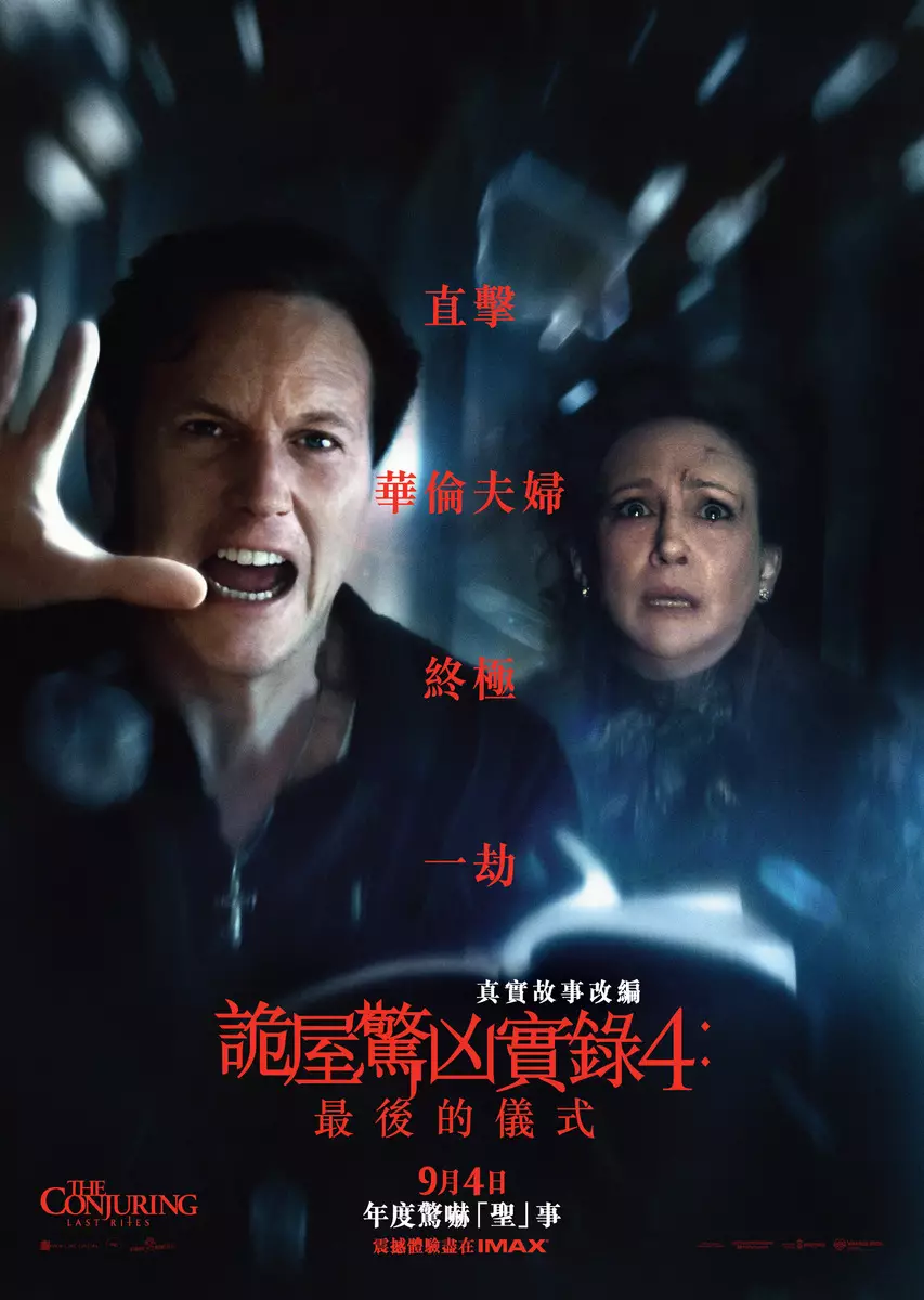 《詭屋驚凶實錄4:最後的儀式》(The Conjuring: Last Rites)是全球票房突破20億美元的「Conjuring 宇宙」第9部電影,也是終極壓卷之作。系列創立人溫子仁、彼得薩弗蘭再㩦手監製,故事改編自華倫夫婦真實檔案中最駭人聽聞的一宗案件,這對靈異調查搭檔,將面臨職業生涯中最恐怖的超自然威脅!看似普通驅魔案件逐漸失控,他倆赫然發現自己對抗著的邪惡力量,已遠超一切預計得來的想像⋯⋯