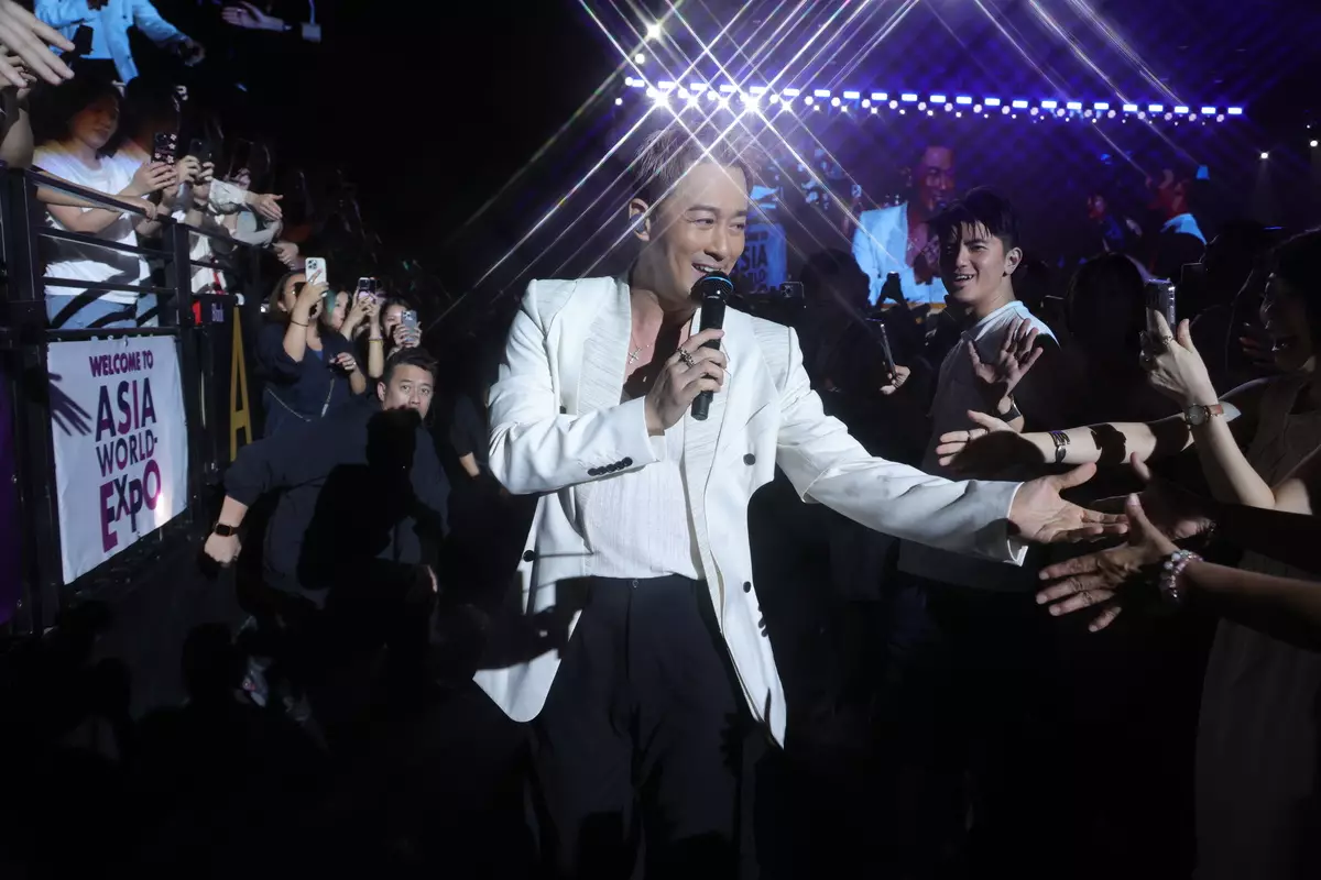 林峯深情演唱其大熱歌曲《愛在記憶中找你》,更走到台下與觀眾近距離握手互動。