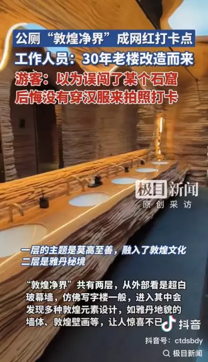 敦煌文旅600平米「網紅廁所」爆紅網絡,飛天壁畫配智能設施成文化新地標引來遊客驚嘆如入石窟!