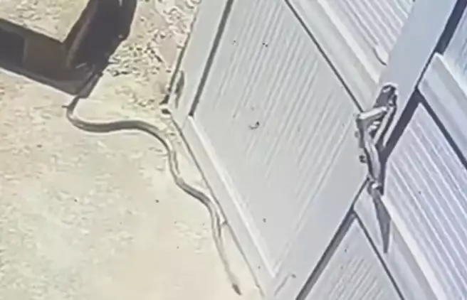 男子如廁遇1米長蛇隻逼近慌忙提褲逃跑。影片截圖