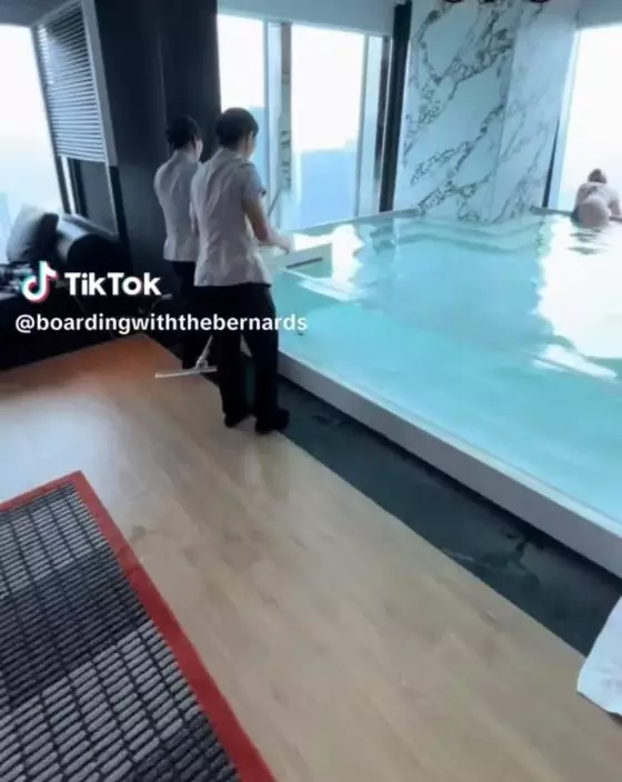 綜合外媒報導,澳洲一名49歲男子伯納德(Graham Bernard)與妻子朱迪(Jodie)早前於TikTok上看到重慶5星級「ISEYA世野高空酒店」的奢華影片時,被套房內「迷你泳池級」的浴缸吸引,遂專程預訂包含浴缸的套房前去度假,結果入住後,浴缸卻因水量過滿導致滲水至樓下。