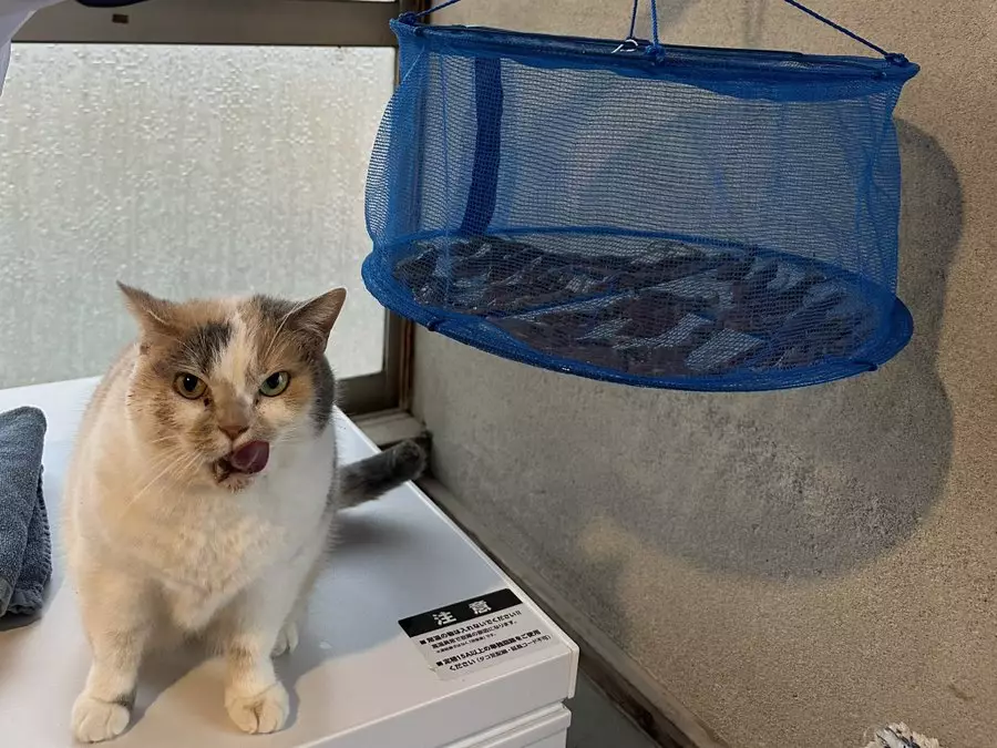 日本富山縣一間旅館飼養了一隻可愛的三花貓「奈奈」(ねねちゃん),並時常在社交平台X上分享牠的可愛點滴。早前,館內將處理好的烏賊吊掛在半空的曬乾籠內,利用陽光慢慢脫水。豈料,奈奈竟趁飼主一時不察,自行擔任「試食員」隔著曬乾籠狂舔,彷彿在替飼主檢驗這批海鮮的品質如何。