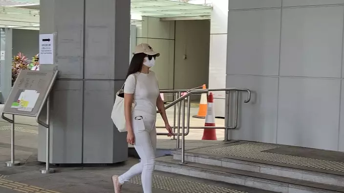 第五被告楊怡斯早上進入法院。巴士的記者攝