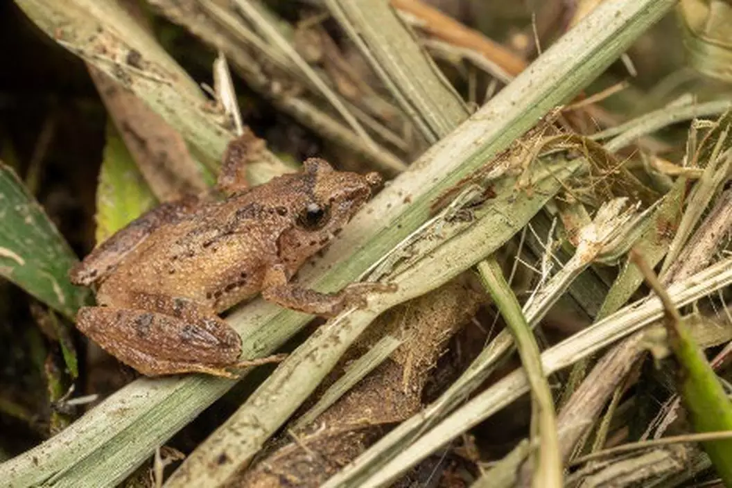 導賞員帶領參加者透過聆聽蛙鳴,尋找香港獨有的「盧氏小樹蛙」(圖)。港燈圖片