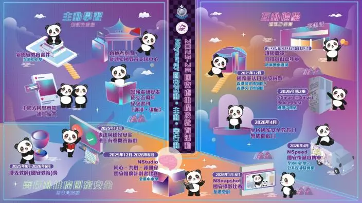 除了課堂教學,警方亦透過軟性手法將國安知識帶入社區。區智仁介紹,名為「國安快遞(NSpeed)」的宣傳車在2025年已走遍全港18區,曾到訪49間學校,接觸近5.8萬名學生;而設有互動問答遊戲的「NSmart」裝置亦走訪了95間學校,接觸逾4.4萬名師生。他形容,這些設施因結合遊戲與獎品,深受學生歡迎,往往在小息及放學時段出現「排長龍」的情況。