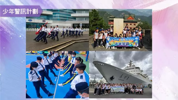 少年警訊成員參與中式步操訓練及內地交流活動。