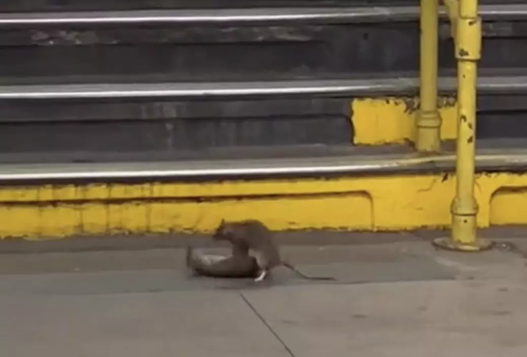 綜合外媒報導,美國紐約市布魯克林格蘭特大道車站(Grant Avenue Station)7月11日上演離奇畫面,兩隻老鼠在月台展開激烈纏鬥,時而躍起相向,時而倒臥翻滾,甚至還使出「騰空飛撲」的招式,宛如兩名「武林高手」過招一樣,令圍觀女子驚呼連連。