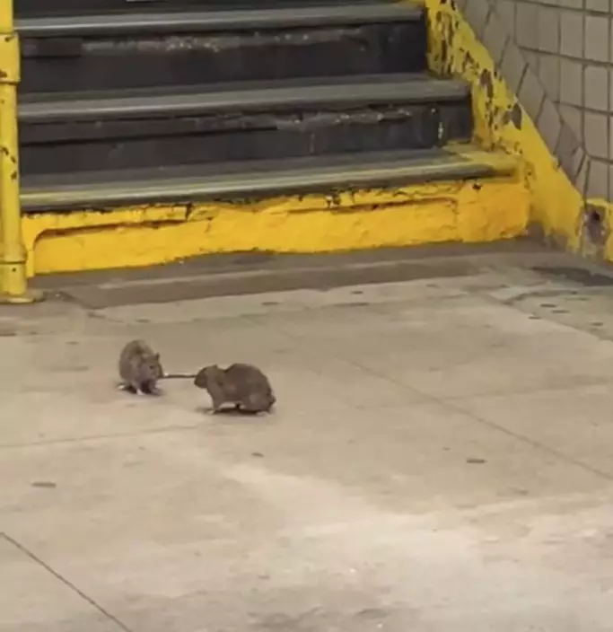 兩老鼠地鐵站展開激烈纏鬥似高手過招