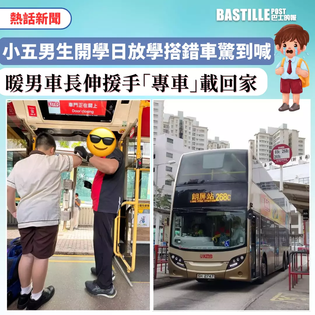 該名網友指星期一(9月1日)下午,她乘坐來往朗屏站及觀塘碼頭的268C九巴時,突然聽聞一名身穿校服的小五男學生同巴士司機表示,自己獨自乘車,但誤乘該線巴士,原應乘坐來往天慈及落馬洲站(福田)的B1九巴,返回位於落馬洲附近的家,直至車輛駛過大欖隧道轉車站才發現搭錯車,小朋友講到此處,「嚇到喊咗出聲,成個人慌到冇晒主意」。