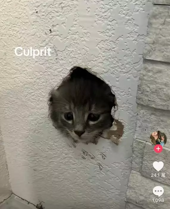 日前,國外一名女帖主「@_martymcflyjr」發現家中牆壁及天花板傳出異常聲響,細聽發現疑似是貓叫聲,於是開始尋找聲音來源。鎖定大概位置後,她果斷將牆面打破,成功救出2隻困在牆內的小貓。