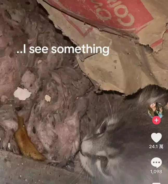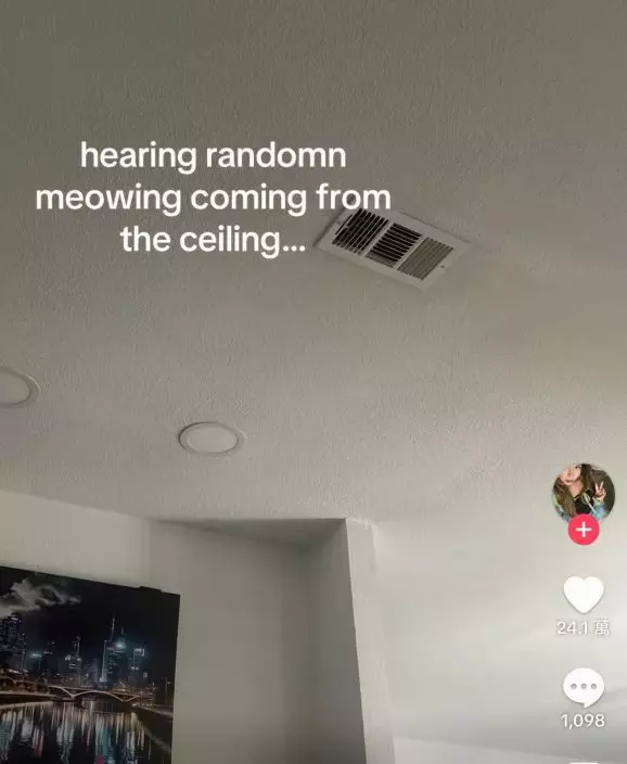 帖主先曬出天花板通風口照片指,家中多次傳來「喵喵」聲,就連自家寵物貓也盯著通風口觀察。之後,她突然聽到一聲巨響,懷疑有小貓跌進牆身,且叫聲愈發清晰,遂循聲定位並決定動手破牆,結果發現不止1隻小貓受困,而是2隻。