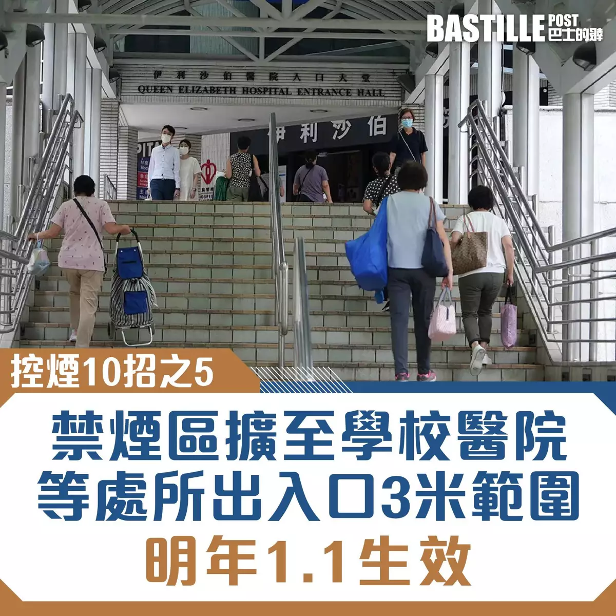 新例擴大法定禁煙區至指定處所專用出入口3米範圍內的公眾地方,包括醫院。