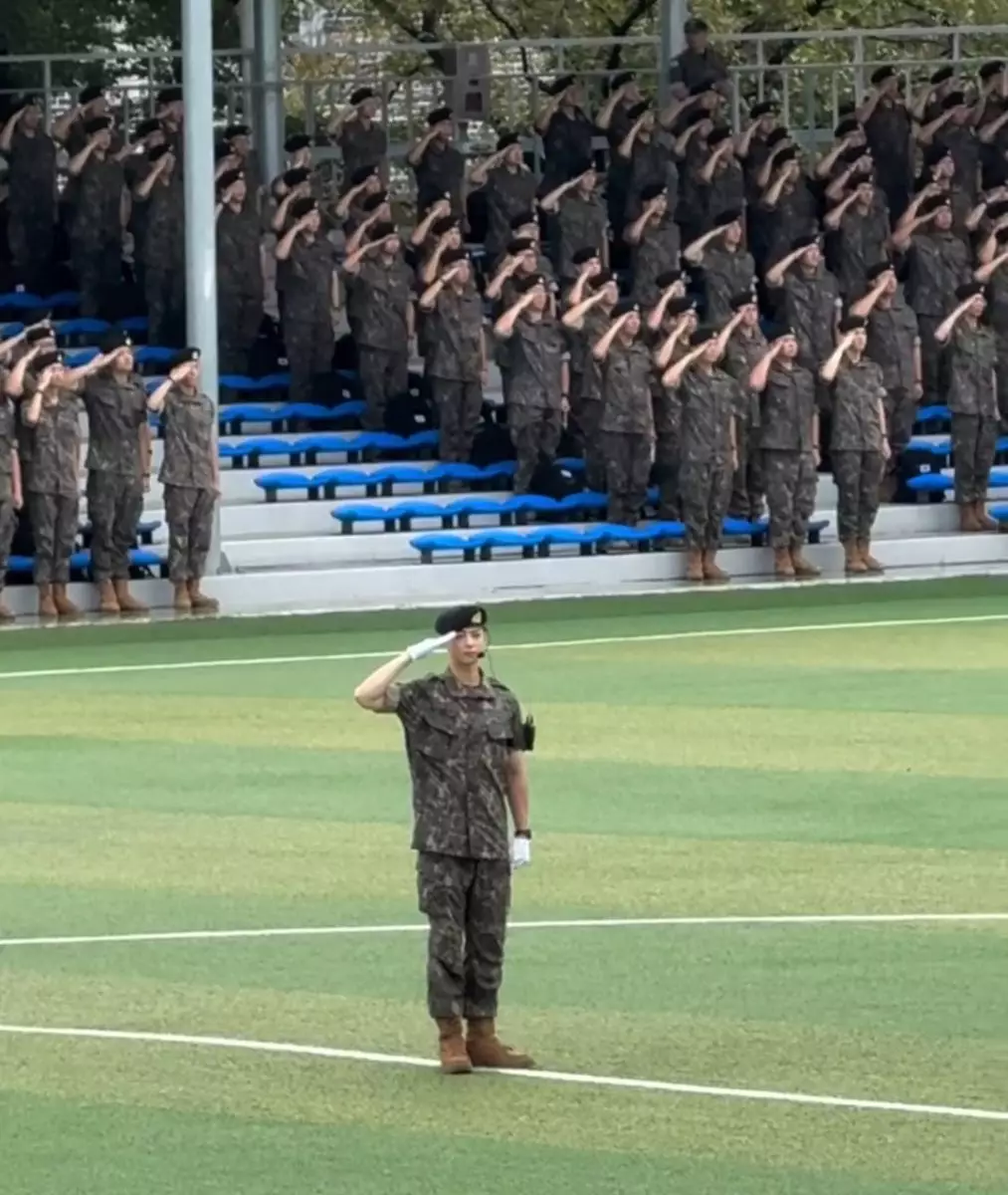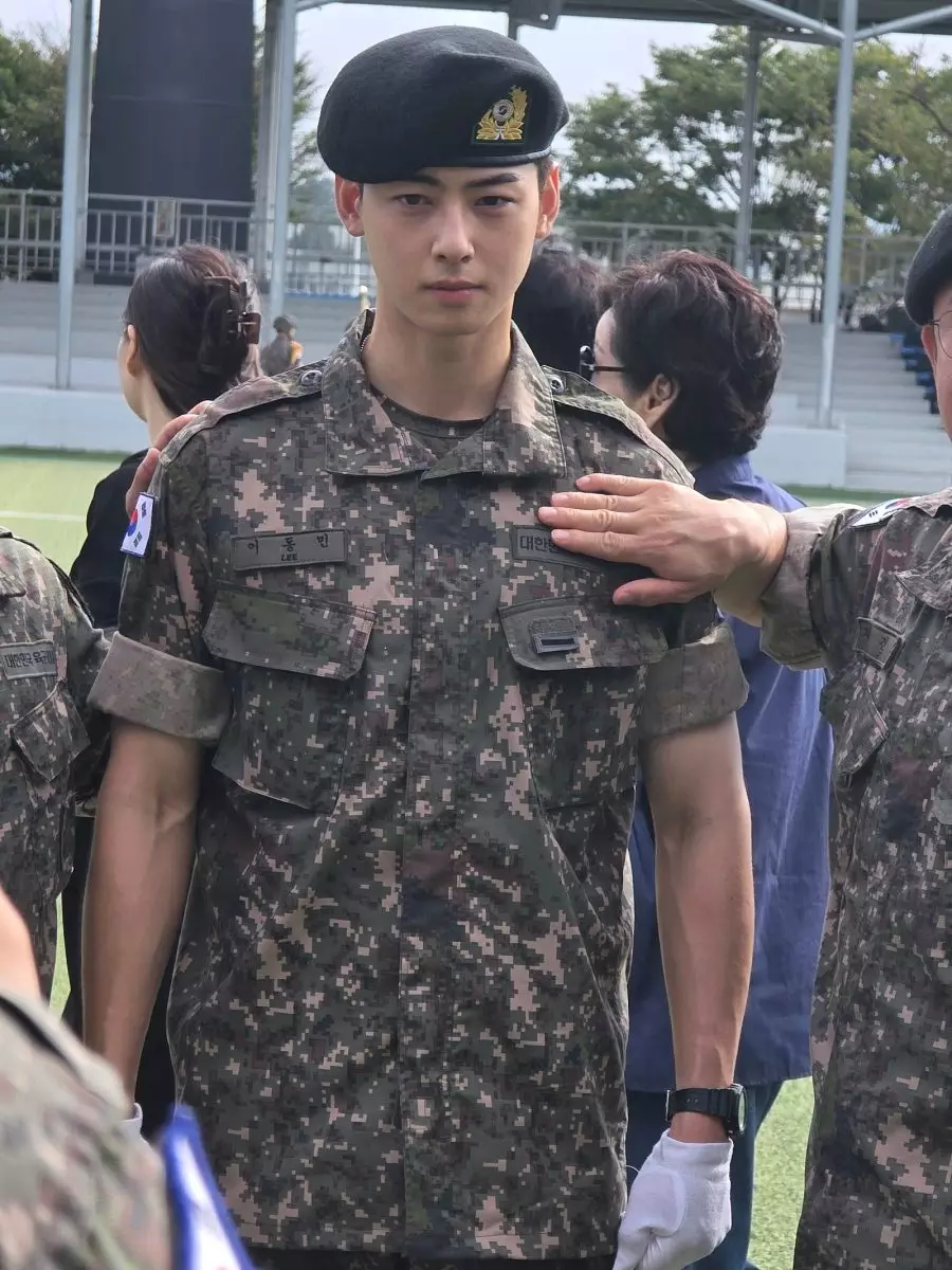 韓國人氣男星車銀優(本名:李東敏)於9月2日在忠南論山陸軍訓練所迎來訓練兵結業式,以一身迷彩軍裝、頭戴黑色貝雷帽的筆挺軍姿現身,展現十足軍人風範。雖然素顏臉龐略顯圓潤,但依舊難掩其精緻五官與明星光環,現場照片曝光後迅速引發網友熱議,紛紛直呼:「這根本是電影場景!」