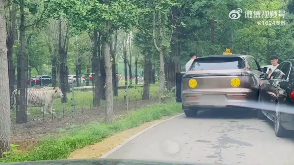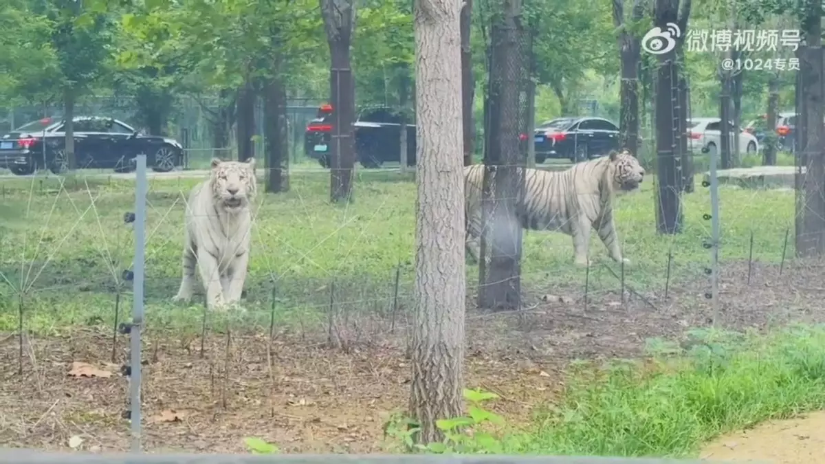 河北兩名私家車司機在動物園猛獸區發生擦撞竟違規下車交涉,結果遭白虎全程「監視」,驚險畫面瘋傳惹議。