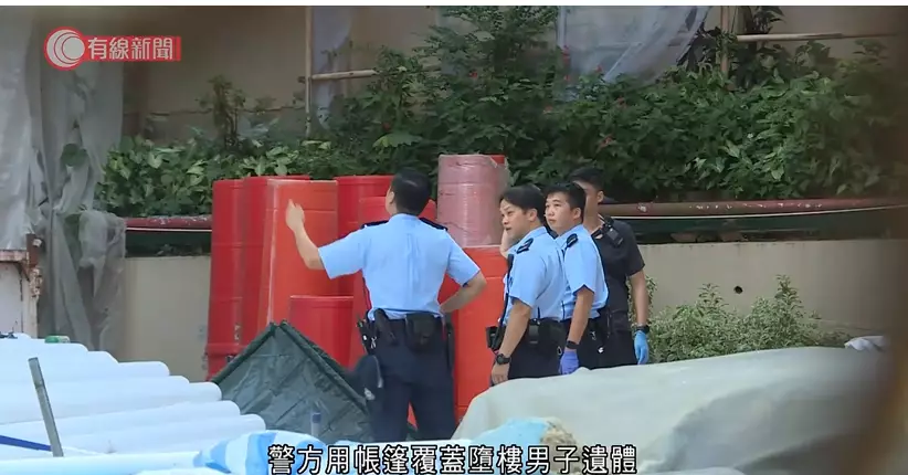 現場有一名51歲男子懷疑從高處墮下死亡。有線新聞影片截圖