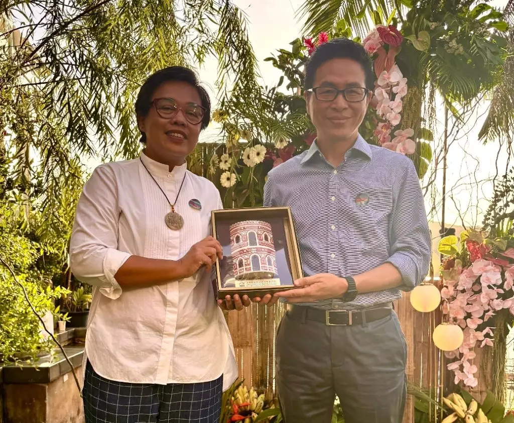 程衛東向宋卡旅遊與體育辦公室主任翁旺(Chiravadee Onwong)致送紀念品。澳門政府新聞局圖片