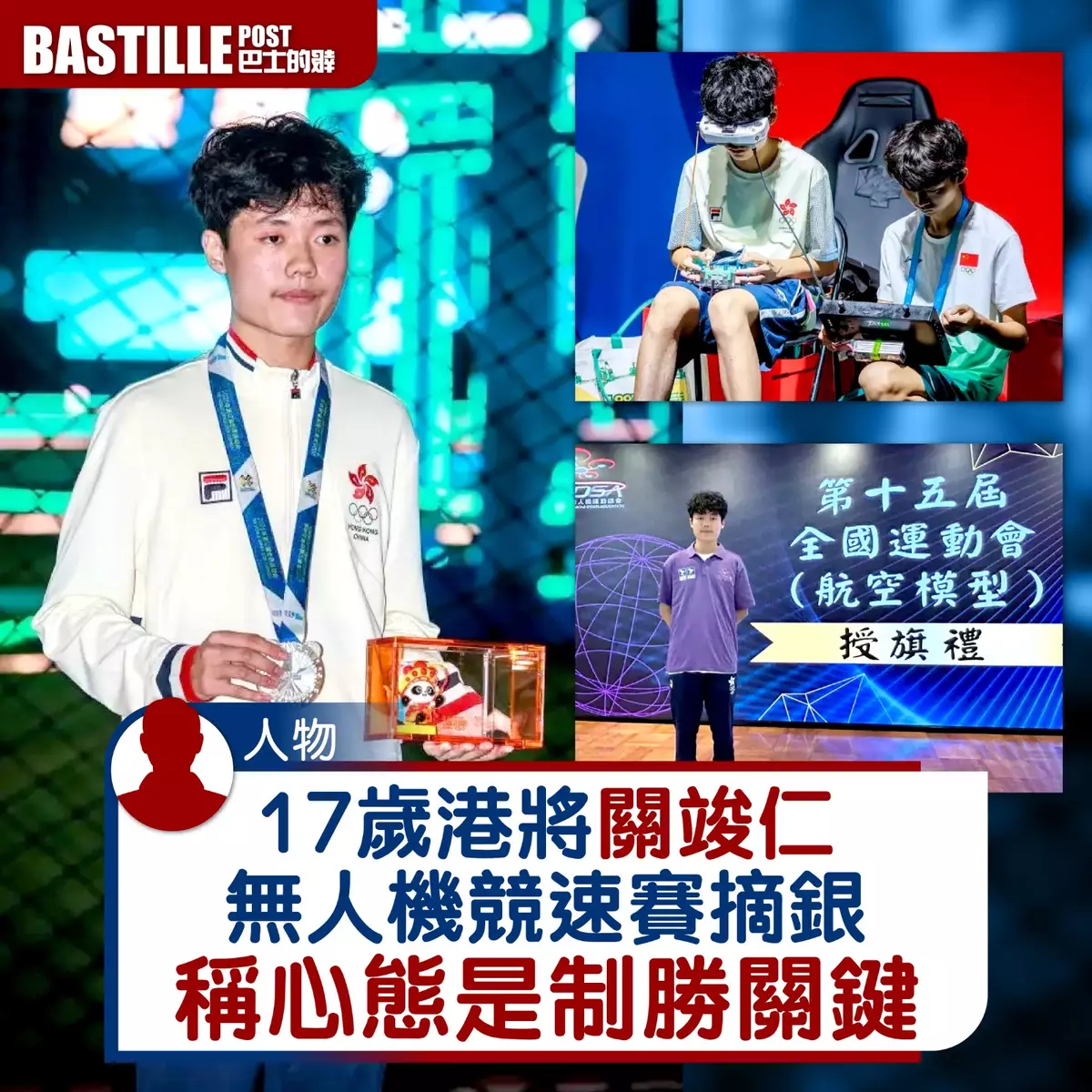 早前圓滿結束的成都世界運動會(the world games 2025)中,年僅17歲的港隊小將關竣仁(小關)在無人機競速項目(Drone racing) 摘銀。小關表示,保持良好的心態和穩定的操作是制勝的關鍵。