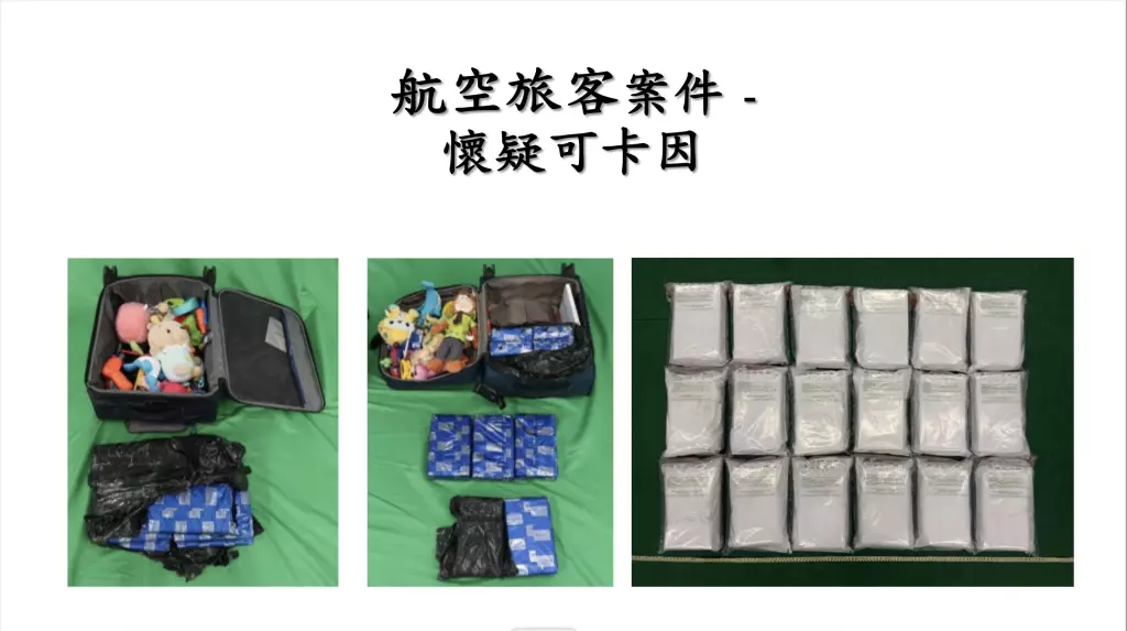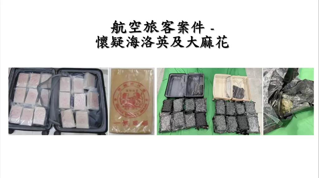 警方又表示,不法分子會利用迂迴飛行路線逃避追查,並採用「接力」方式運輸毒品,例如毒販來港時,會將藏有毒品的行李箱寄倉,但抵港後不會取回行李,會交由另一人取走有關行李,增加追查難度。
