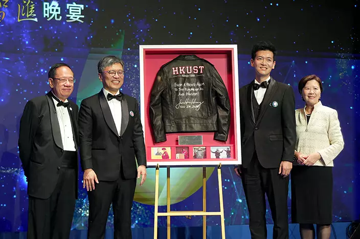 黃仁勳去年將刻有「一名自豪的校友致科大與人工智能的未來」字句的皮衣贈予科大作籌款之用,旨在培育新一代工程領袖。