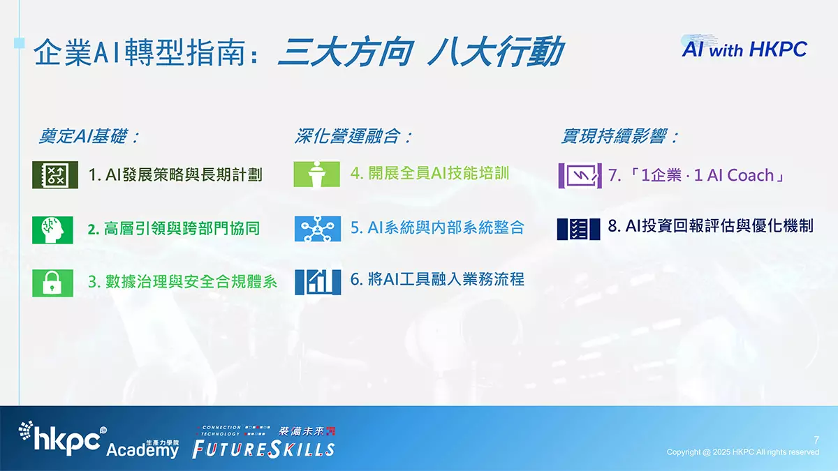 7. 實施「一企業一AI Coach」計劃,賦能AI專才在企業內部持續推動 AI 培訓及應用