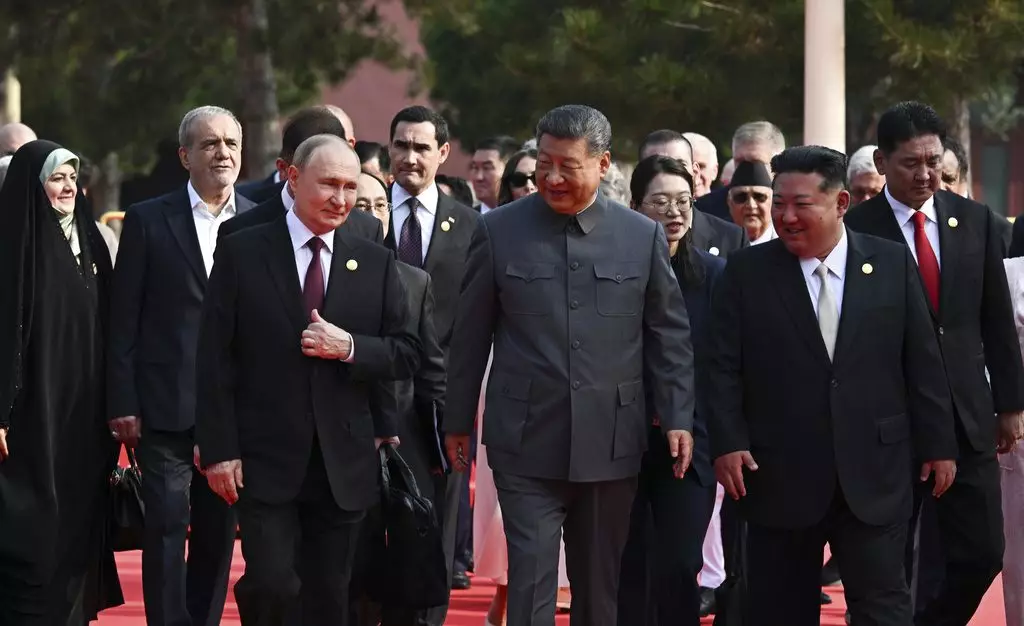 習近平同俄羅斯總統普京及金正恩。AP圖片