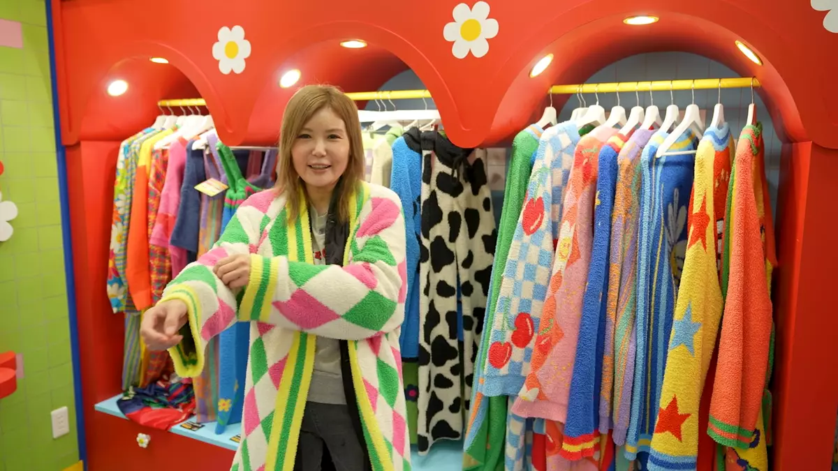 今晚(9月3日)杜如風(Helen)介紹一間去年底開業的韓國生活品牌店,該店位於原宿竹下通樓高三層,地下一層主打文具、二樓以家品為主、三樓賣的是浴室及睡房用品。Helen表示該店的signature為熊仔及兔仔,極受Gen Z世代歡迎,不過店內的Best Sell是一款生果圖案購物袋,一個盛惠1,790日圓(約95元),抵買實用。當Helen來到三樓即刻被一款浴袍吸引,她說︰「呢件浴袍 14,000日圓(約740港元)都幾貴,G-DRAGON都係鍾意着浴袍,款式都係咁上下嘅嘢。」該店另一吸引處是提供不少打卡位,就算沒有幫襯都要入內拍照參觀一番。