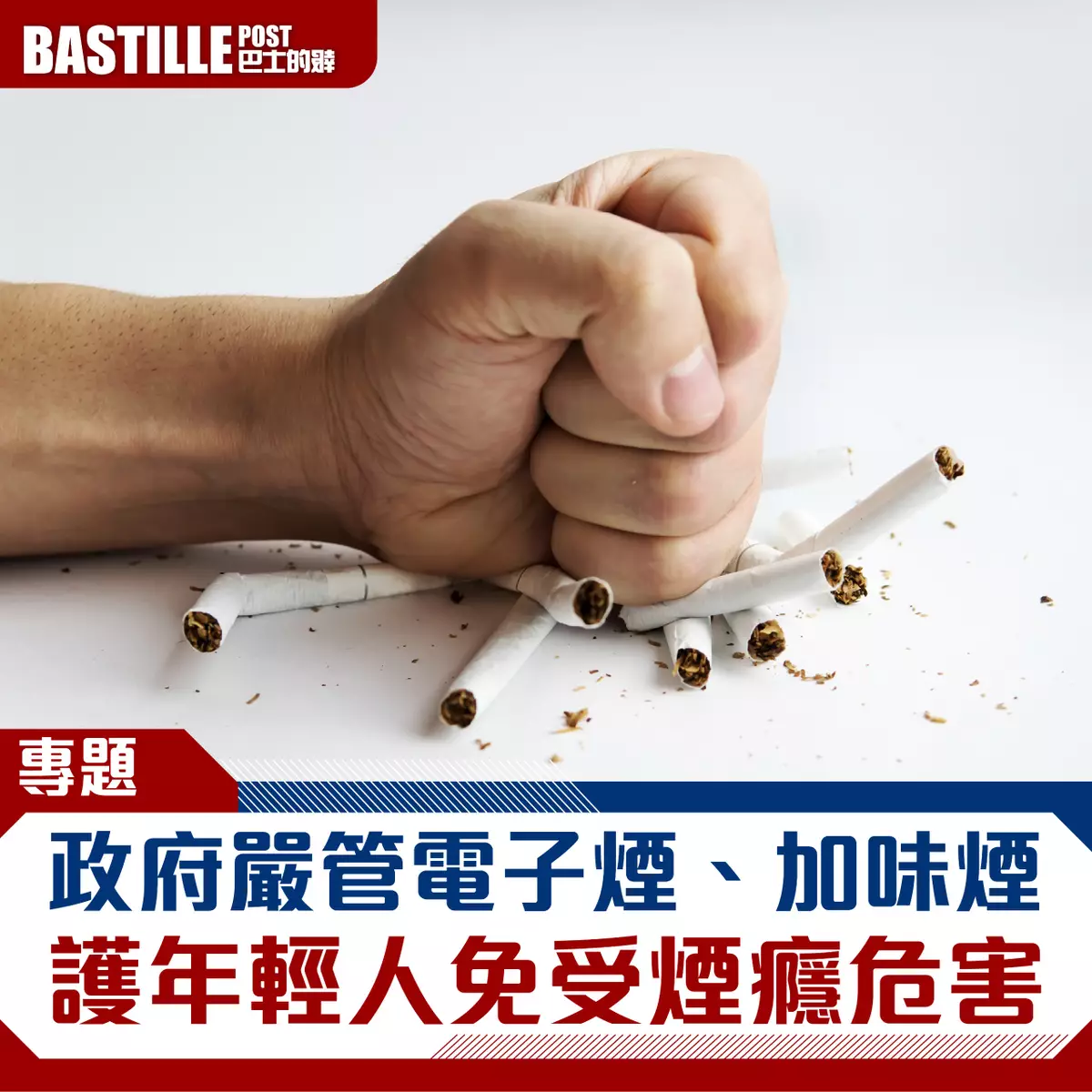 政府推行「控煙十招」加強控煙規管 ,相關修例草案快將提交立法會二讀,若獲通過,將即時禁止向未滿18歲人士出售傳統煙及電子煙等產品,並分階段向所有人禁止售賣加味煙。電子煙或加味煙的禍害,常被年輕人忽視,以為比傳統煙輕微,但其實危害更大,或導致煙癮更深,甚至可能因此染上毒癮,以致無法挽回。