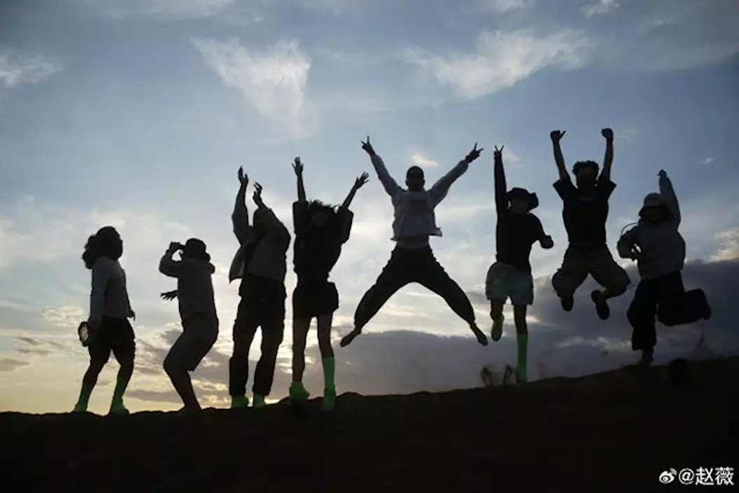 趙薇在微博上傳了多張風景照,從新疆的日落美景到浩瀚星空,並留言:「巴音布魯克沒有海」。其中一張自拍照更是引起廣泛關注,可見她的臉頰明顯消瘦,面容清減了不少。儘管近日有內地法院凍結她高達1600萬元人民幣的股權,但從相片中她與七位朋友在日落前跳躍的背影來看,趙薇似乎心情並未受影響,玩得相當盡興。
