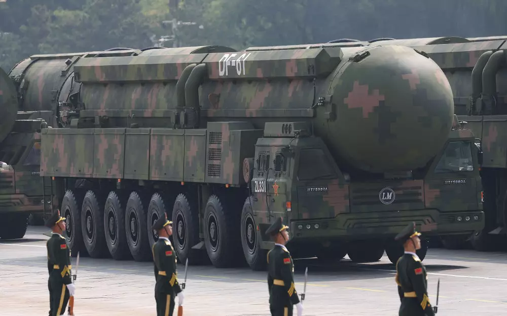 雄壯的軍樂聲中,習近平乘車沿着寬闊的長安街,依次檢閱徒步方隊和裝備方隊,DF61導彈亮相閱兵場。