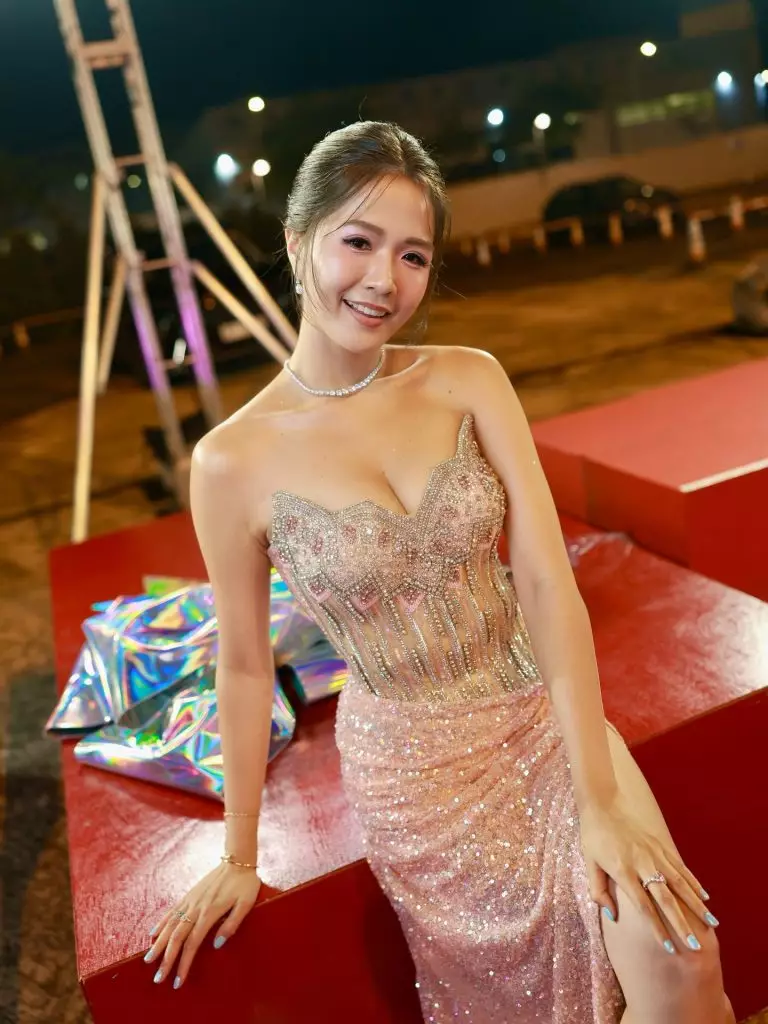 日前梁敏巧(Maggie)以師姐身份出席港姐決賽,其登場造型旋即成為話題。據現場所見,梁敏巧以一套粉紅色珠片晚裝示人,這套晚裝的設計不僅貼身顯瘦,更巧妙地展現了她的香肩與美腿。梁敏巧側坐在室外的攝影位前,對著鏡頭展現迷人笑容,並擺出多個優雅且充滿魅力的甫士。