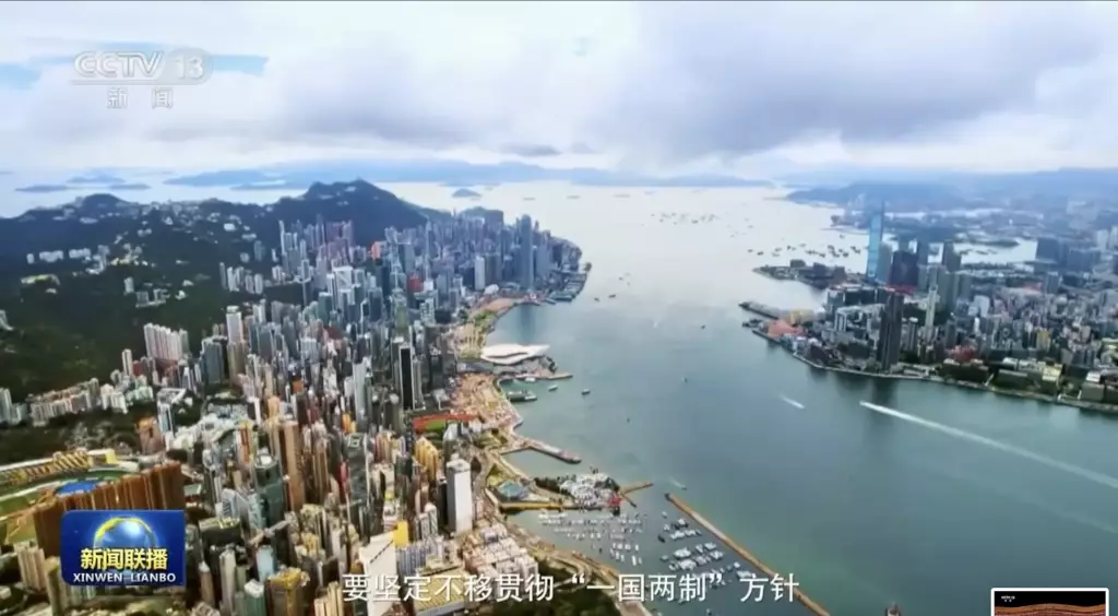 習近平指要堅定不移貫徹「一國兩制」方針,支持港澳更好融入國家發展大局,保持長期繁榮穩定。央視新聞截圖