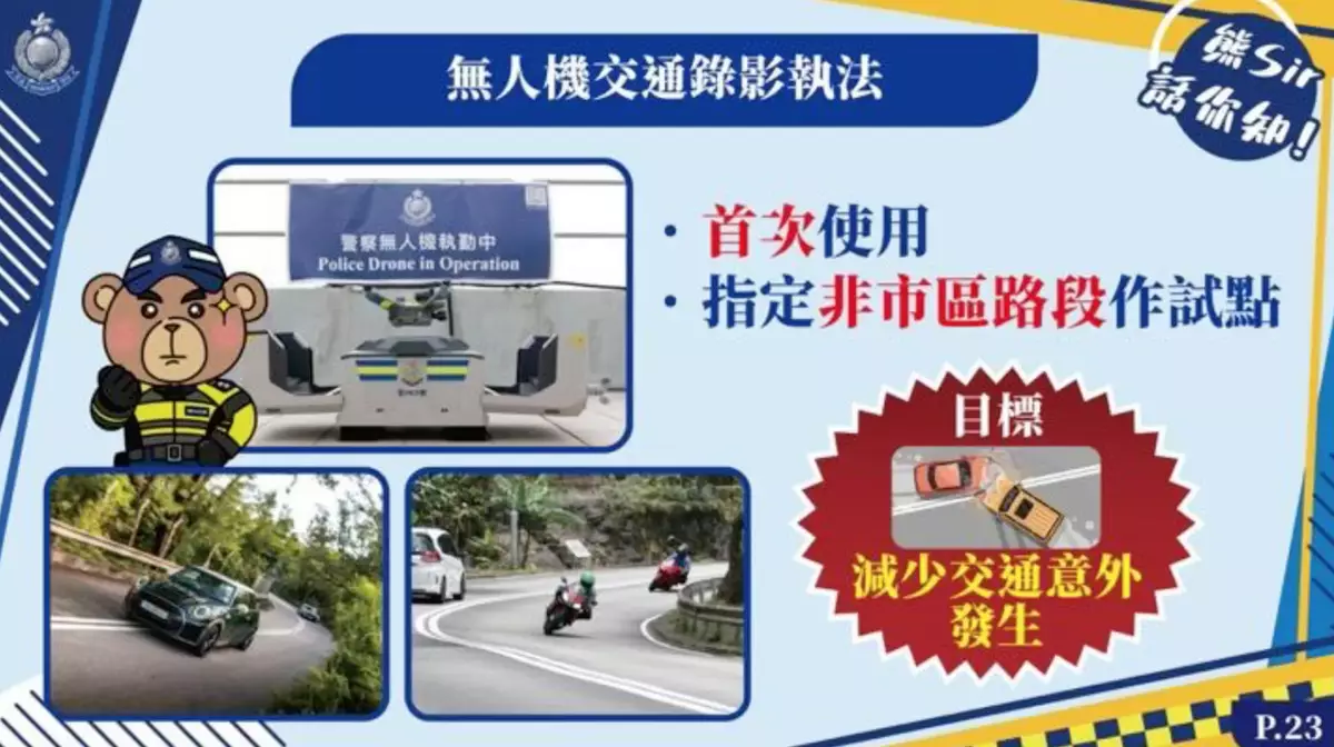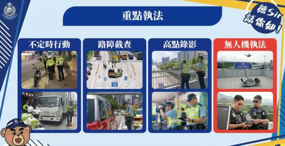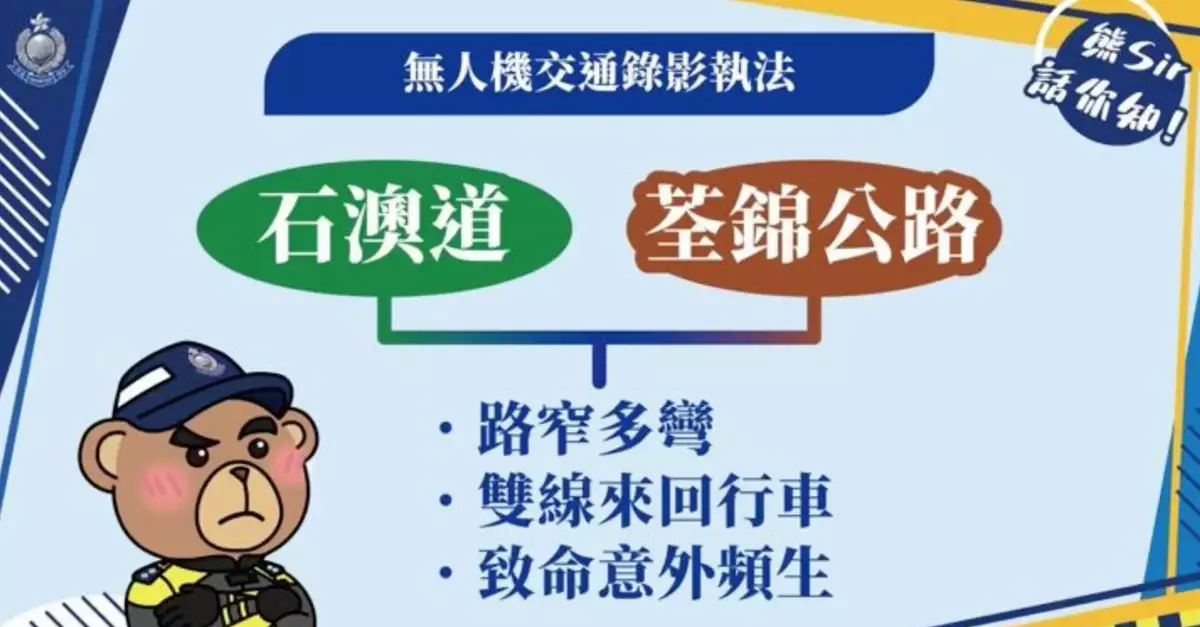 警方下星期進行大規模執法行動,針對駕駛者違規行為,將不定時及不定點執法,並首次以無人機在非市區路段,包括遊車河熱點石澳道及俗稱「大山」的荃錦公路高空錄影搜證,加強阻嚇。