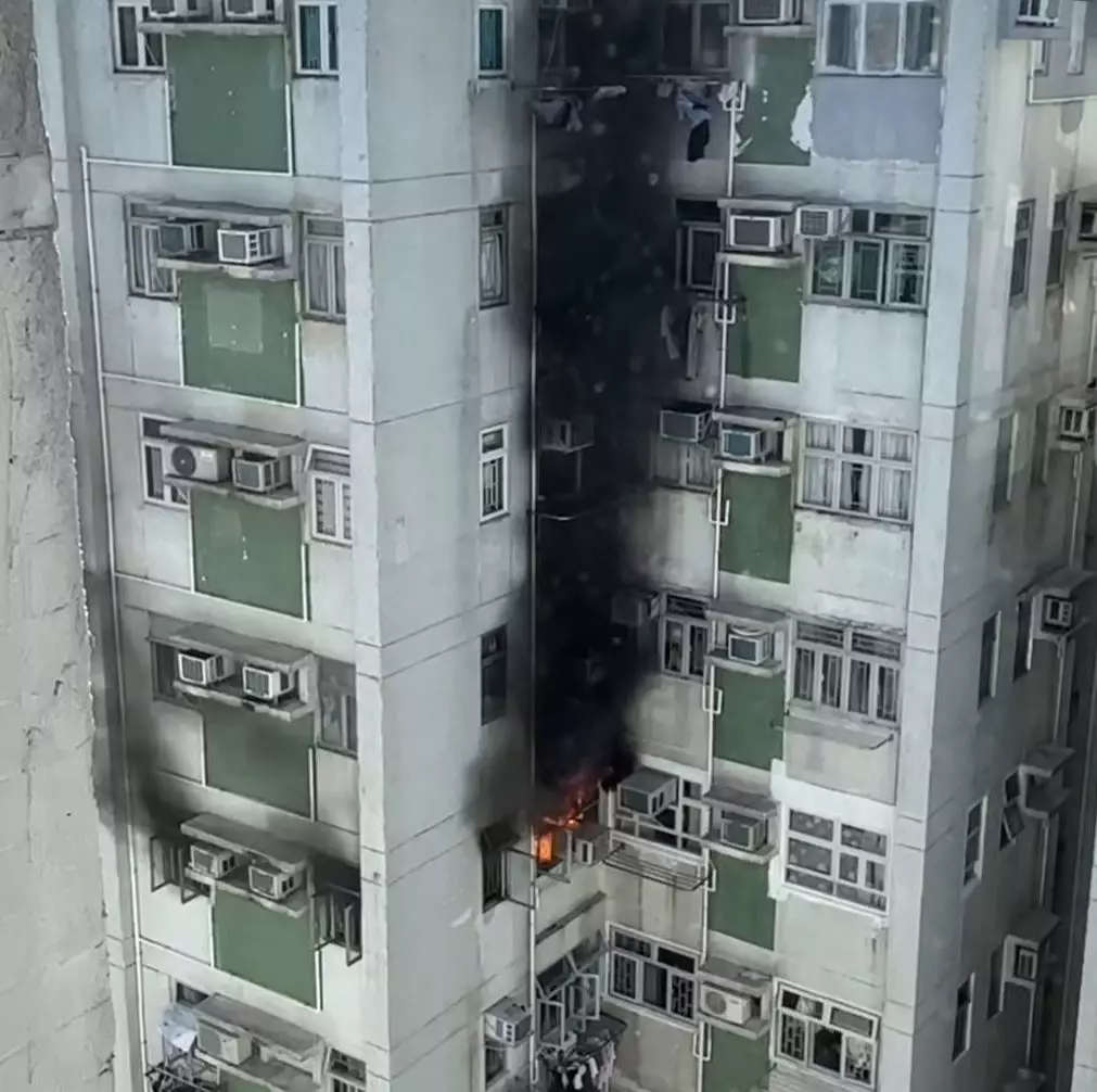 警方在下午3時25分接獲多名市民報案,偉景閣B座一個單位發生火警。網上片段所見,大量黑煙由單位的窗口冒出,湧上樓上單位。