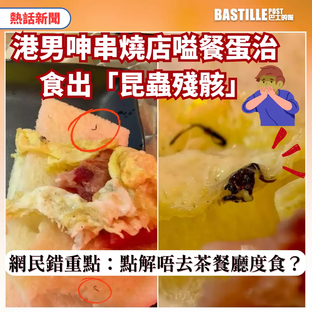 港男呻串燒店嗌餐蛋治食出「昆蟲殘骸」 網民錯重點:點解唔去茶餐廳度食?