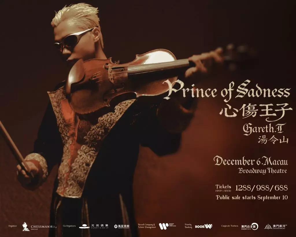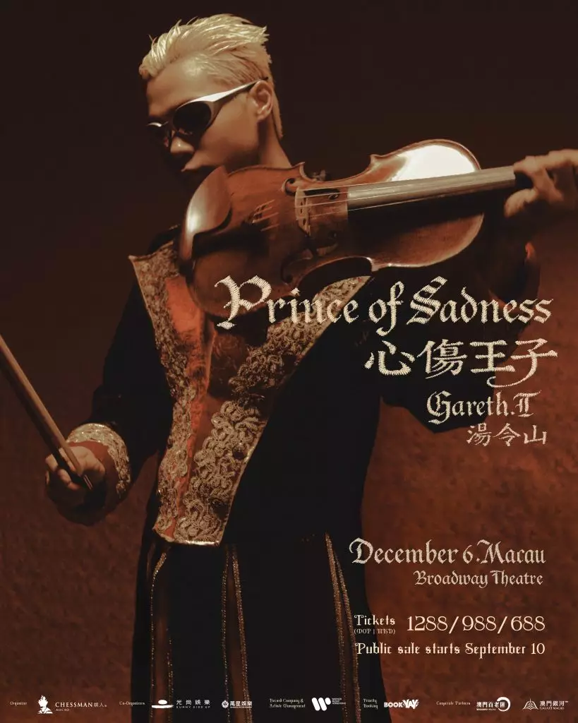 是次巡演以「心傷王子」為主題,象徵著Gareth.T透過音樂擁抱悲傷、與情感共存。今年10月於倫敦舉行的演唱會反應熱烈,展現其跨越地域的強大號召力。澳門站將延續主視覺的暗黑風格,帶領觀眾深入這位全能音樂人的內心世界,體驗一場深邃而內斂的藝術呈現。澳門站門票將於2025年9月8日上午10時起透過BOOKYAY優先發售,並於9月10日中午12時於銀河票務、大麥、貓眼、MPay澳門錢包、澳門售票網及uutix等多個平台同步公開發售。