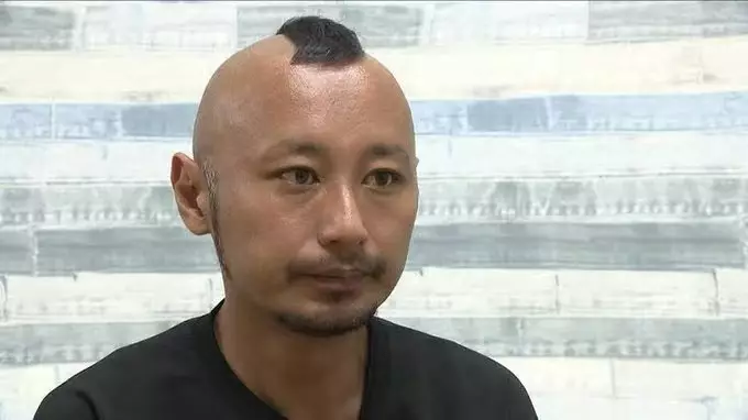 男子保留雞冠頭髮型方便親友辨認